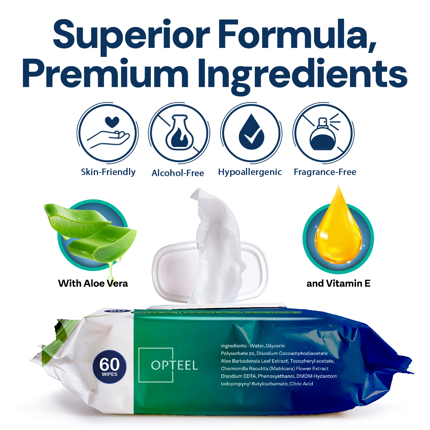 Fragrance-free adult wipes made for incontinence care and gentle daily cleansing. Ideal for seniors and anyone with sensitive skin. Choose 4 packs of 60 (240 wipes) or 12 packs of 60 (720 wipes) based on usage needs.